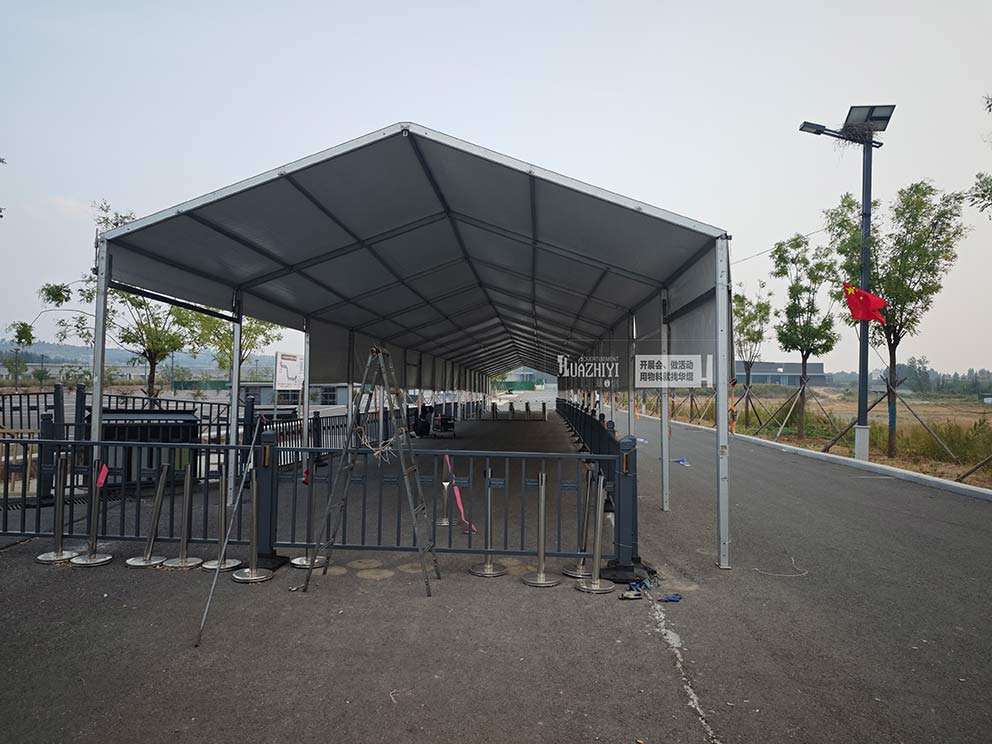 隨著旅游業的蓬勃發展,少林寺景區的人流量日益增大,傳統的安檢設施已經難以滿足需求。為此,景區管理部門決定引入篷房式安檢站,以提高安檢效率和游客體驗。鄭州華熠篷房出租公司憑借其豐富的經驗,奔赴目的地開始了此次的搭建工作。
