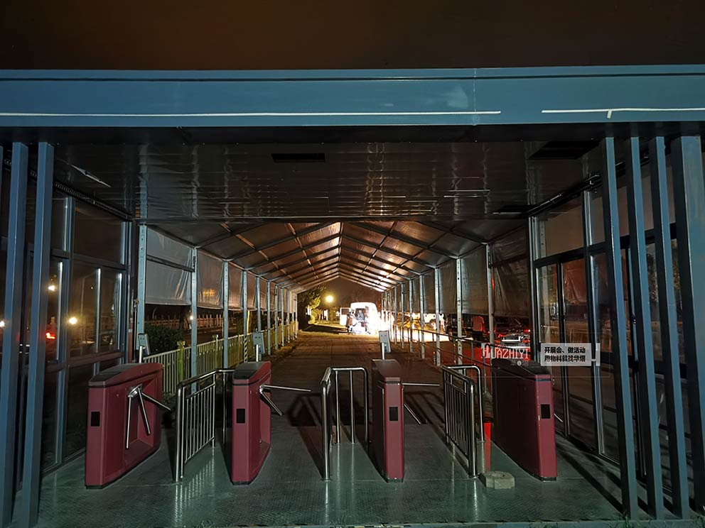 在搭建現場,工作人員們忙碌而有序地進行著各項工作。他們先是對場地進行了詳細的測量和規劃,確保篷房的布局合理、穩固可靠。隨后,迅速將一個個篷房組裝起來。這些篷房不僅外觀美觀、大方,而且內部設施齊全,能夠滿足各種安檢需求。