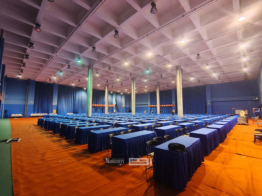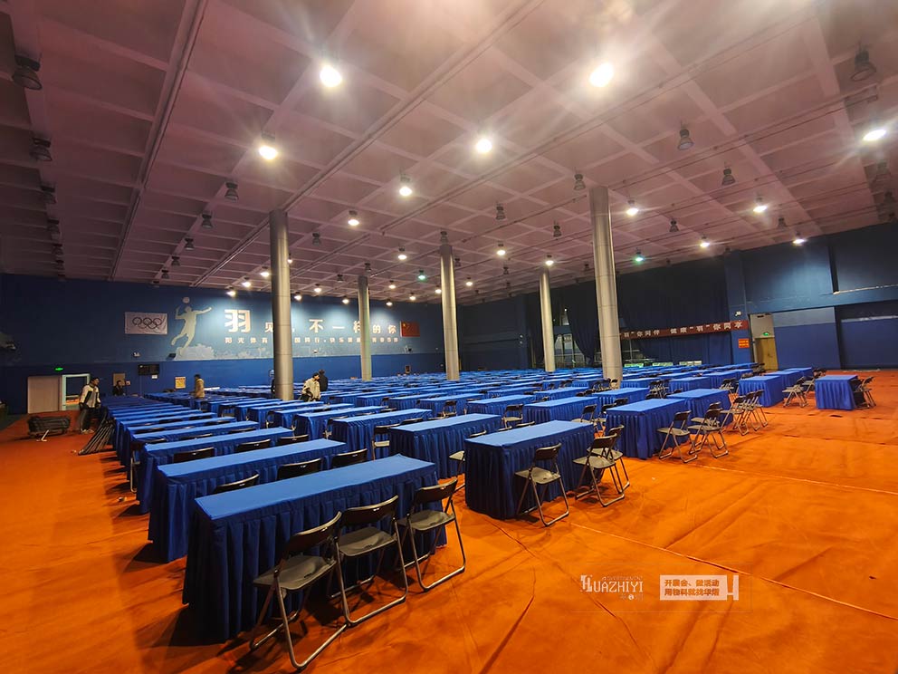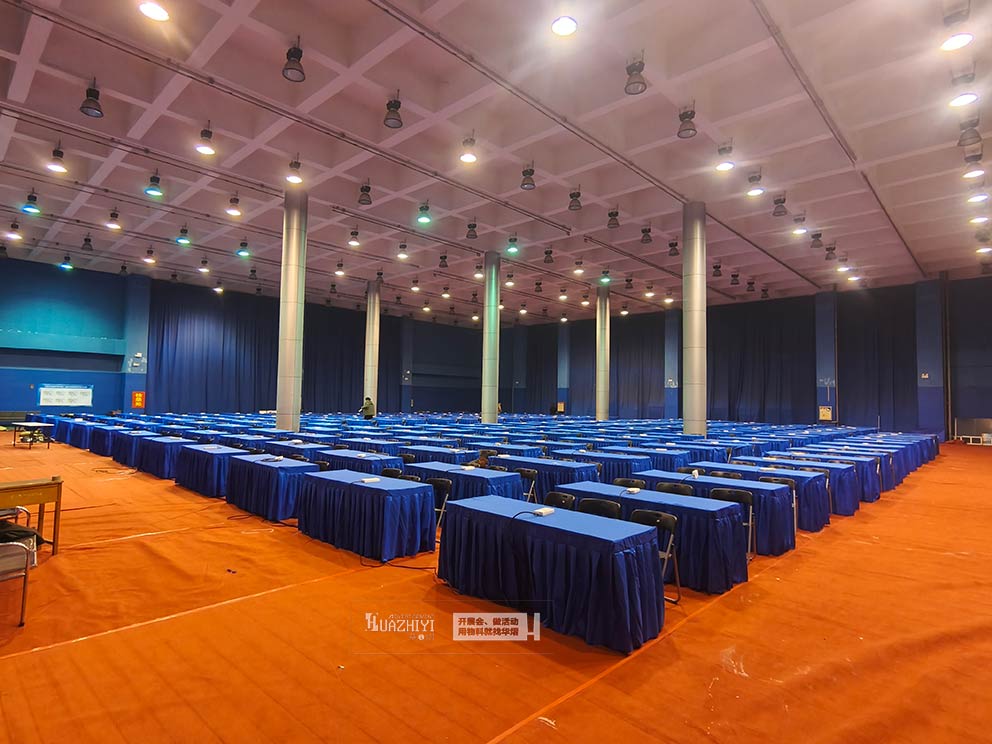 一場兼具秩序感與活力的活動,離不開貼合場景的場地布置。開封桌椅租賃精準把握高校活動特性,以鋪著藍色桌布的長條桌搭配黑色折疊椅為核心物料,為平頂山城建學院打造了功能實用、視覺協調的活動空間,讓校園活動在舒適有序的氛圍中精彩展開。