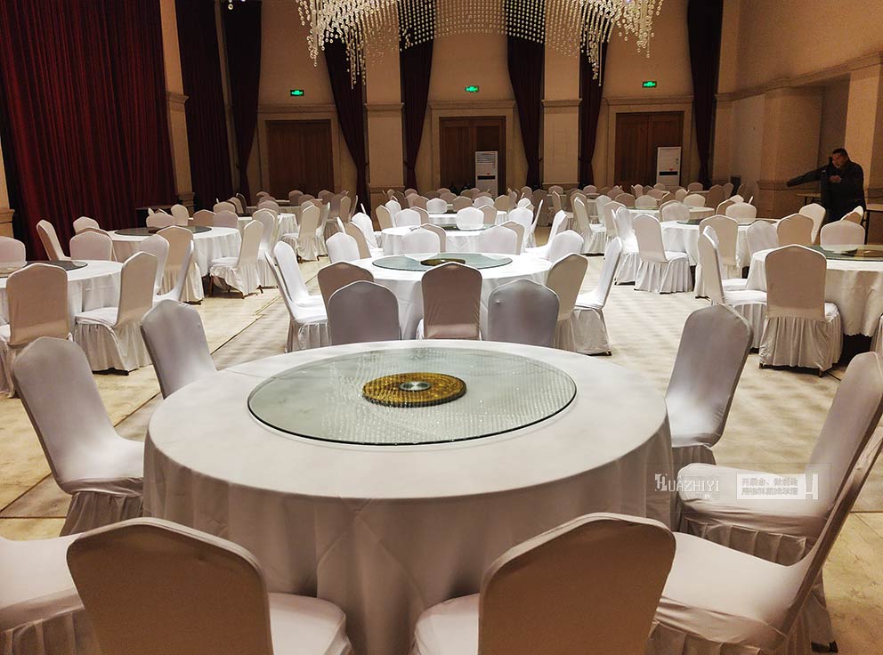開封桌椅出租為九紫星畔產業園選用的大圓桌,是空間功能的核心載體。桌面采用實木基材搭配鋼化玻璃轉盤,玻璃轉盤邊緣經過圓弧打磨處理,既保證使用安全,又增添通透質感,方便參會者輕松取用餐食或交流物料;桌面鋪設純白色桌布,桌布材質選用防污易清潔的聚酯纖維,潔白平整的外觀與產業園現代簡約的裝修風格高度契合,同時能提升空間的明亮度與整潔感。大圓桌直徑根據場地需求靈活選擇,可容納8-12人圍坐,既適合小型商務洽談,也能滿足團隊會議需求。